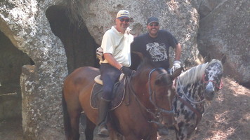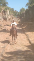 Il giro della mattina mira a visitare il complesso archeologico della necropoli meridionale di Falerii Novi. Quest'area ha una notevole estensione ed è distinta in tre settori denominati: Cava Foce, Tre Ponti, Cavo degli Zucchi. Quest'ultima è la più bella essendo un'area archeologica che presenta ampi tratti di strada perfettamente conservati che percorreremo a cavallo osservando più di un centinaio di tombe di varia tipologia (tombe a camera, a portico, loculi, nicchie, colombari, fosse ) ricavate lungo le pareti della tagliata tufacea attraversata dal suo percorso, in quello che si può a ragione definire uno dei complessi archeologici più interessanti dell’intera Etruria Meridionale.